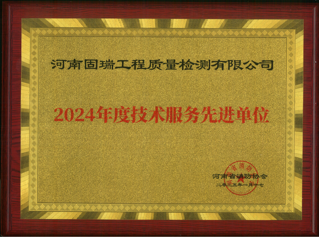 熱烈祝賀河南固瑞工程質(zhì)量檢測有限公司榮獲河南省消防協(xié)會(huì)2024年度技術(shù)服務(wù)先進(jìn)單位!!!